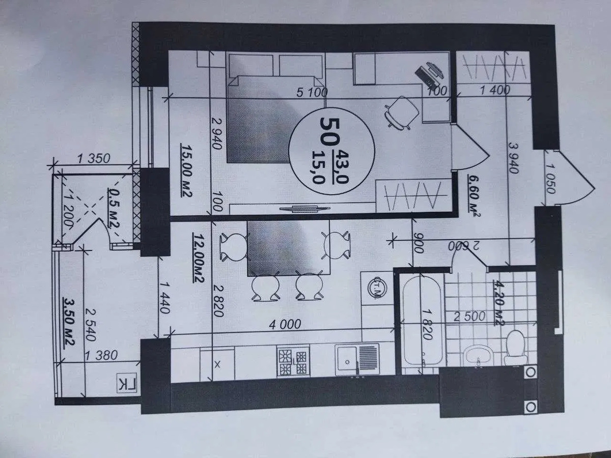 42,8 / 15,1 / 11,1 м2